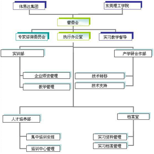 伟易达(东莞)电子产品有限公司国家级工程实践教育中心采取企业负责制的运作方式。具体组织架构包括:
