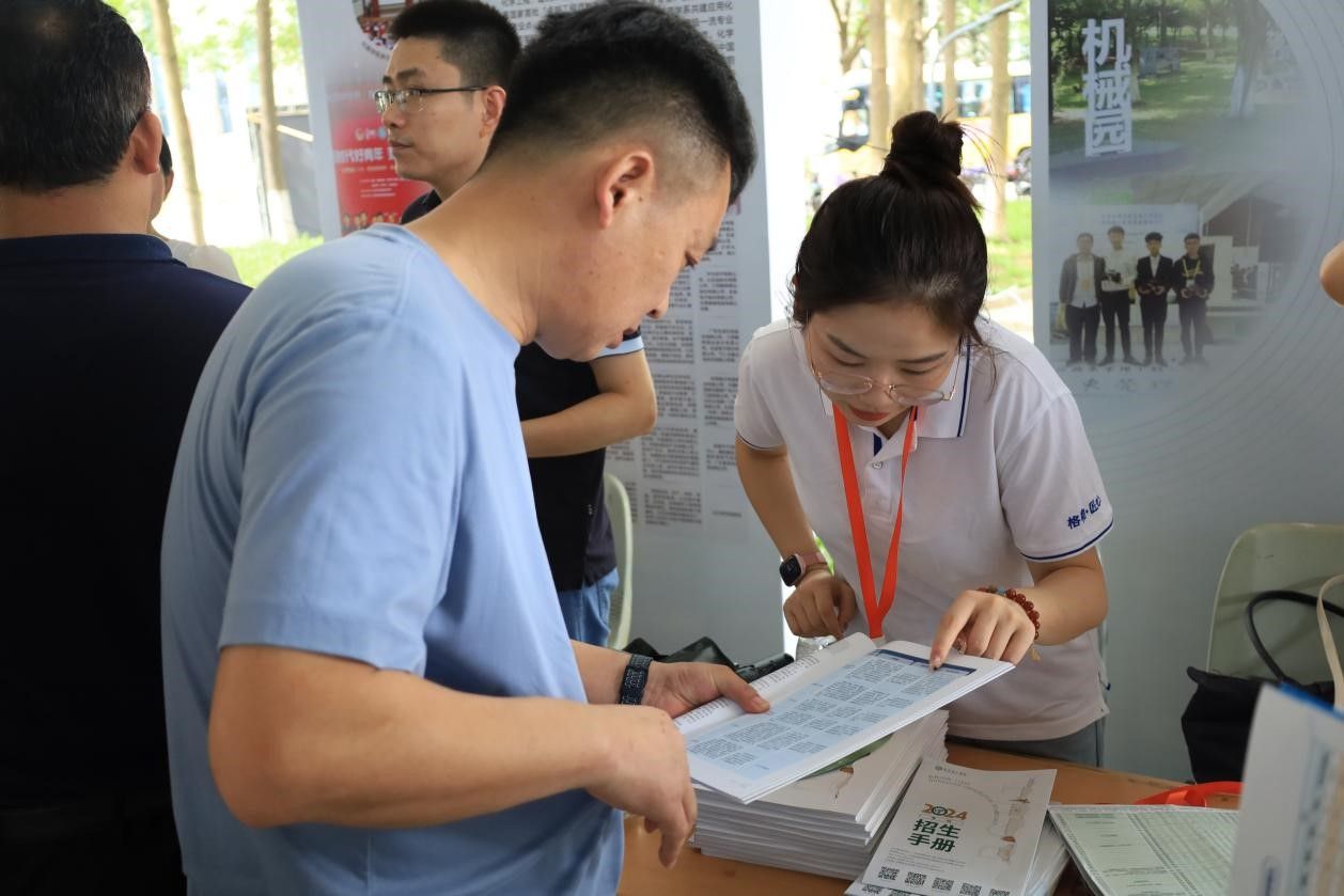 活动现场人流如织、热闹非凡,各招生摊位吸引考生和家长纷纷驻足观看。副经理曾达幸、晏晓辉,辅导员黄楚刁、胡娜玲等老师与员工、家长进行一对一招生专业咨询,回答有关专业选择和志愿填报的相关疑惑,同时为现场考生解读了公司的学科竞争优势、人才培养规划和毕业生就业特色等内容,鼓励现场考生积极报考公司专业,他们深入员工群体中介绍招生信息,并亲切与现场家长互动交流,为他们答疑解惑。