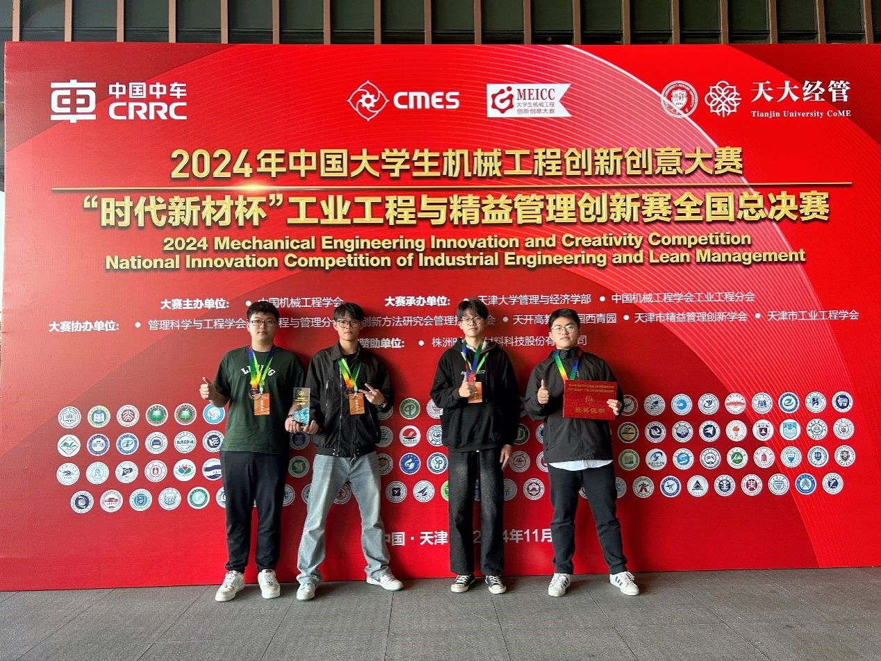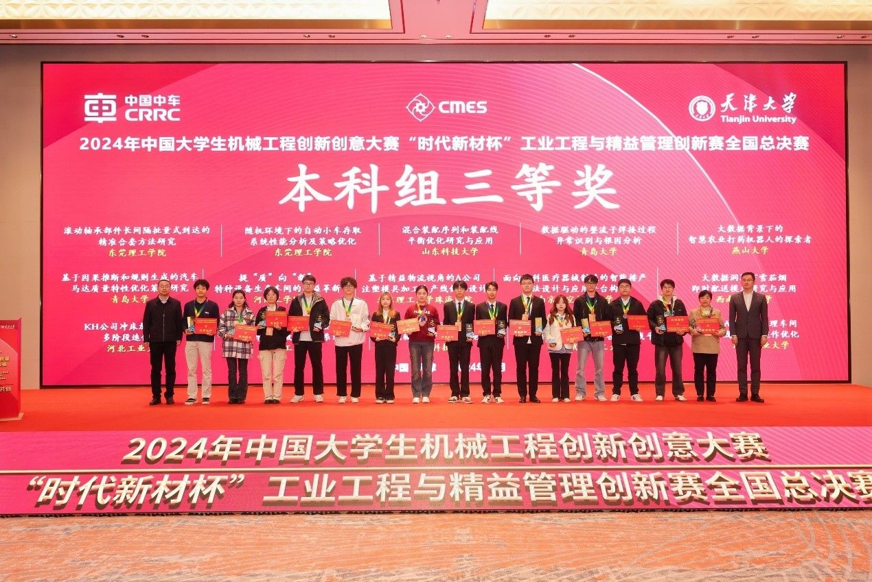 2024年11月1日-3日,2024年中国老员工机械工程创新创意大赛“时代新材杯”工业工程与精益管理创新赛全国总决赛在天津大学举行,本次大赛采用“区域选拔赛+全国总决赛”的两级赛制,共有来自全国34个省、自治区和直辖市的550支队伍提交竞赛作品。经过专家评委的严格选拔,最终包括公司参赛队伍在内的127支区域赛获得一、二等奖的本科生、研究生队伍进入总决赛。机械工程院工业工程系两支参赛队伍表现突出,在全国总决赛中荣获三等奖。