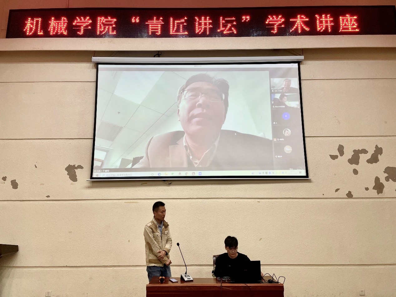 讲座伊始,于靖军在线上开展讲座分享,于靖军以柔性机构及其应用为主题,从ASME MRC主题变迁的视角浅谈机构学的发展;阐述了柔性机构学基础理论、柔性机构学与机器人的相关研究思路和柔性与并联机构的应用;系统性地讲解了面向柔性或并联机构构型设计的图谱化构型设计方型法及理论,为研究生们提供了一种简单实用的创新设计手段。最后,于靖军就官方报告具体介绍了机构学的未来发展战略,让同学们更好地认知到机械专业今后在社会上关于柔性机构学的发展方向。