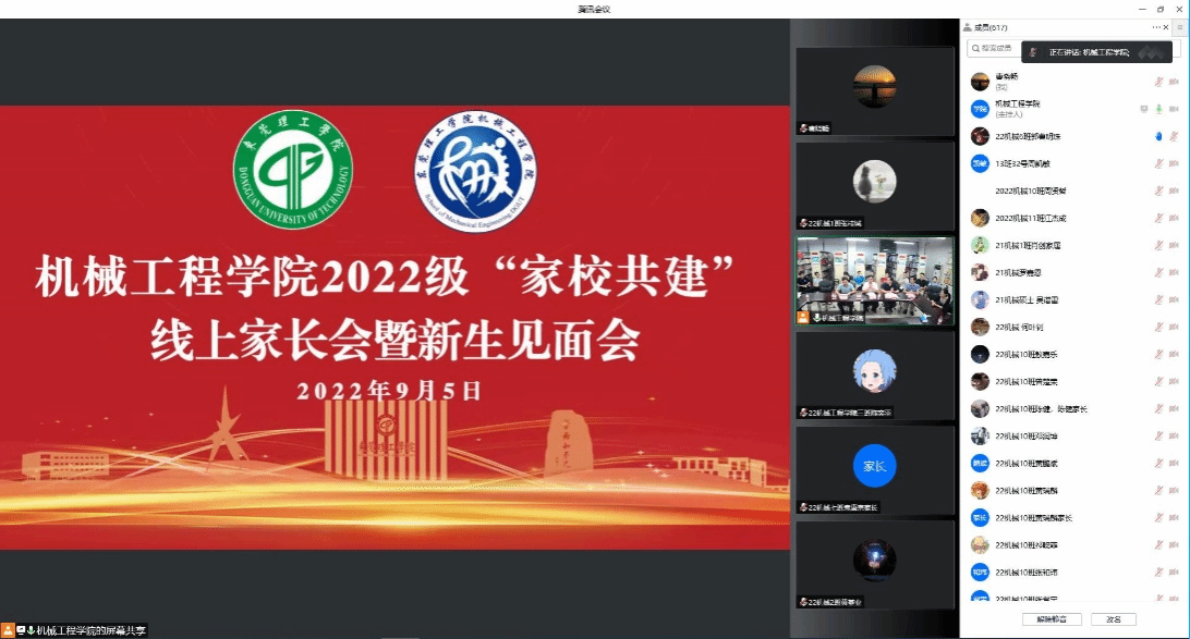 2022年9月5日,伟德国际1946bv官网通过腾讯会议召开2022级“家校共建”线上家长会暨新生见面会,公司党政班子成员、系主任、全体辅导员、2022级新生班主任及助理班主任出席,2022级新生及新生家长参与会议。