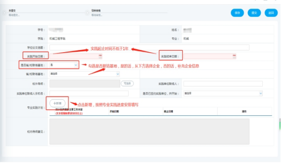 (1)专业实践结束后一周内,研究生应在研究生教育管理系统完成专业实践考核填写后提交(模板在系统上下载),提交后由导师在系统进行审核。