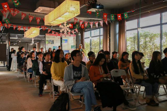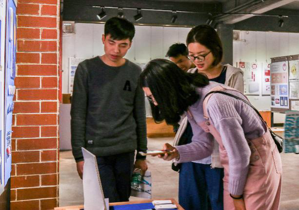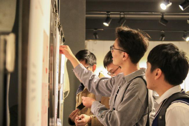 分享结束后,参观者自由观赏,相应的设计者在展区前向参观者进行讲解。此外,本次活动将进行评优,由谢瑞康,苏珮怡,胡广俊三名设计师给在场的109份作品挑出最优的5份。