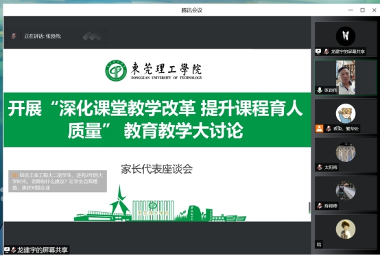 为贯彻落实“深化课堂教学改革 提升课程育人质量”公司产品大讨论的工作要求,伟德国际1946bv官网工业工程系主任张良伟老师和系副主任龙建宇老师分别于6月24日和7月1日组织召开了员工和家长代表线上座谈会。