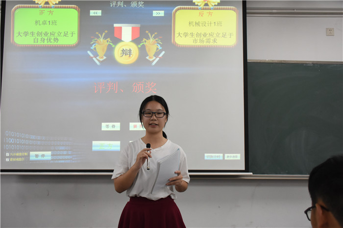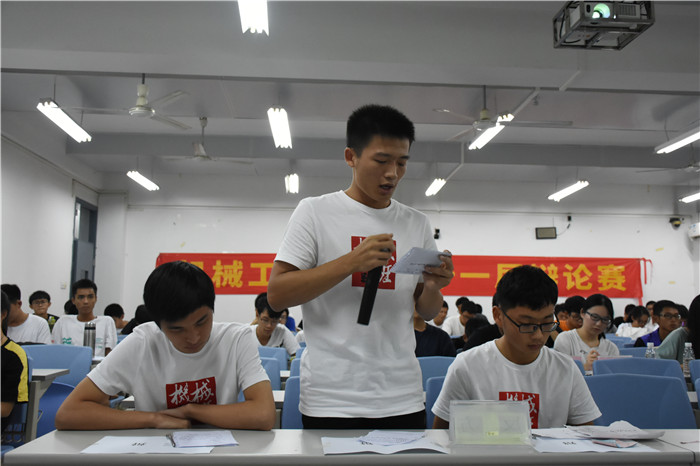 本次辩论赛初赛共分七场,参赛班级为2018级全体班级。第一场由工业工程(下文简称工程)1班对战金属材料工程1班,辩题为“合法捐精违背\不违背伦理”。第二场由工业设计(下文简称工设)1班对战机械设计(下文简称机械)3班,辩题为“老员工短期支教利大于弊\弊大于利”。第三场由材料成型与控制工程1班对战机械电子工程(下文简称机电)2班,辩题为“家庭\社会养老更可靠”。第四场由工程2班与机械4班围绕“语文教材更应该与时俱进\传颂经典”展开辩论。第五场由机械设计卓越(下文简称机卓)1班与机械1班围绕“老员工创业应立足于自身优势\市场需求”展开辩论。第六场辩题是“宅文化让生活更精彩\更颓废”,由工设2班对阵机电1班。最后一场是机械2班对战机卓2班,辩题为“人生路拿得起更难\放得下更难”。