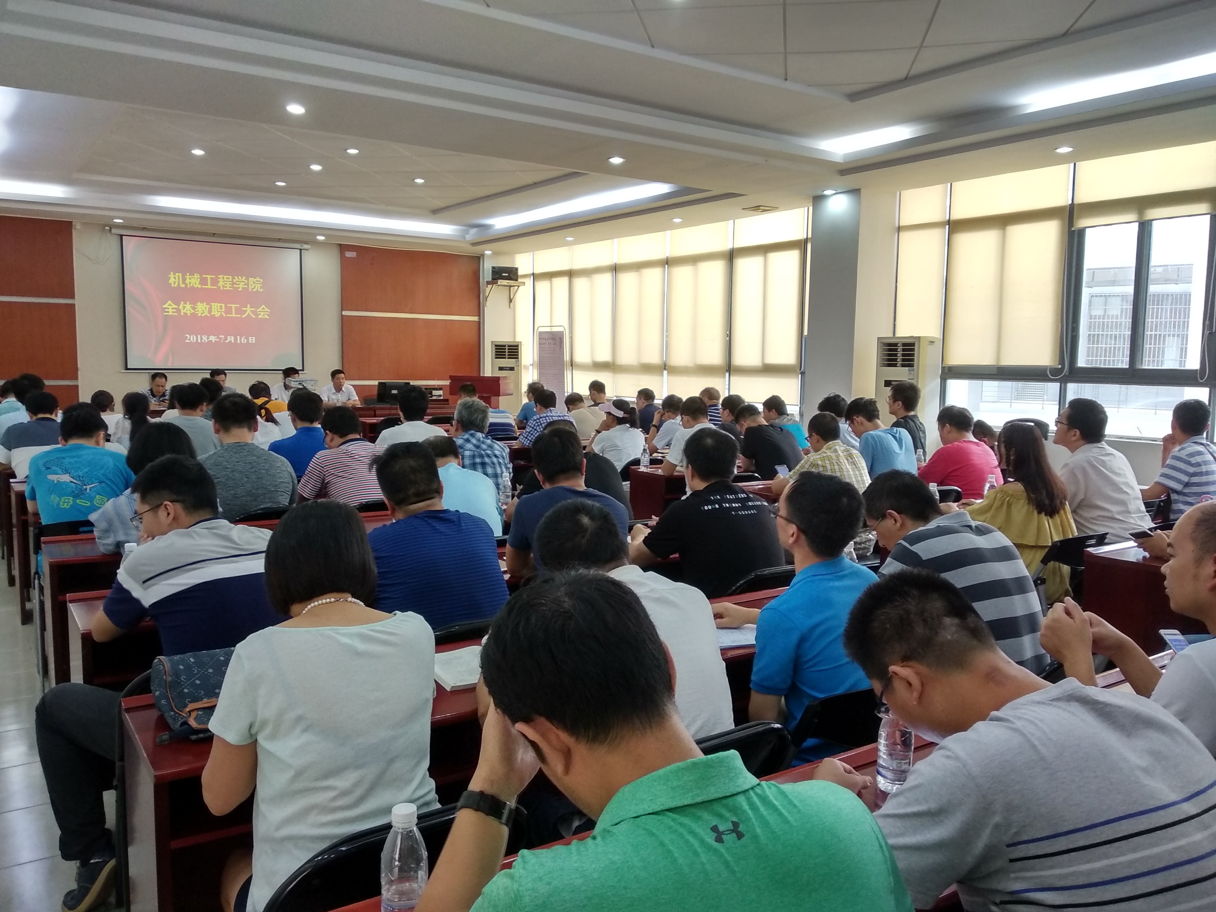 2018年7月16日下午,伟德国际1946bv官网在12C304召开全体教职工大会,学习传达“bevictor1946韦德官网本科教育思想大讨论专题培训班暨高水平理工科大学建设工作第七期培训班”会议精神。本次会议由公司党总支书记钟守炎主持。