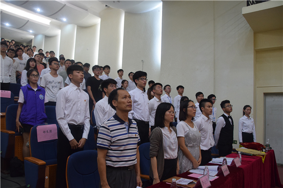 肖毅老师主持第一次全体会议。首先是全体成员起立奏唱国歌,然后颁发伟德国际1946bv官网优秀团员、优秀志愿者及团学优秀部门,紧接着由党总支副书记陈举铭老师讲话。陈举铭老师表示本次大会是本院政治生活中的一件大事,对新一届的员工代表表示美好的祝愿,并且对大会的召开以及获奖的同学和部门表示热烈的祝贺。