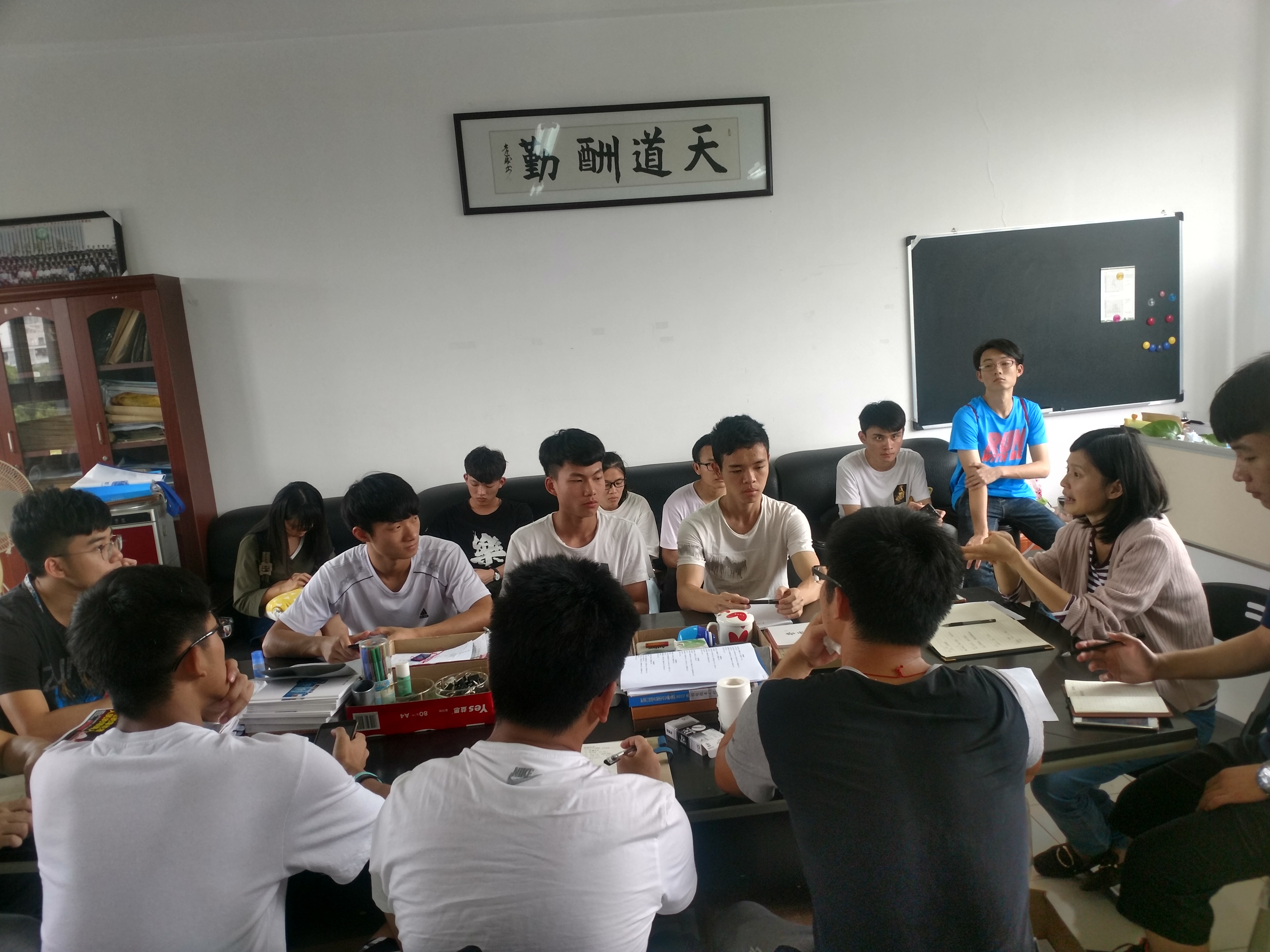 会议上老师深切关心同学们的学习与生活,分别从学习与生活两大方面展开探讨。会议内容包含近期的志愿服务劳作安排、课外学分重新登记、宿舍关系问题、学业预警考勤问题、自主重修等等问题。各班长也积极配合工作安排与汇报近期的一些班级情况,黄老师细心且耐心地解答并指导。