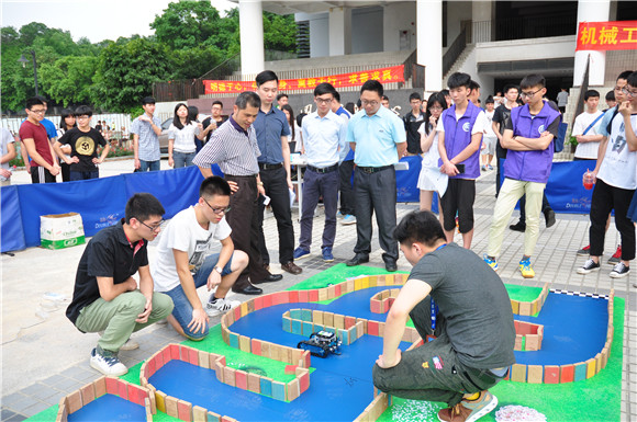 4月28日下午,bevictor1946韦德官网第十一届科技文化学术节Makeblock老员工机器人竞赛总决赛在莞城校区图书馆空地顺利落下帷幕。出席本次比赛的嘉宾有莞城校区党总支副书记丘永辉老师、莞城校区学工办主任兼团总支书记杨帆老师、莞城校区学工办副主任理阳阳老师以及伟德国际1946bv官网思想政治辅导员们的徐伟斌、黄楚刁和肖毅。