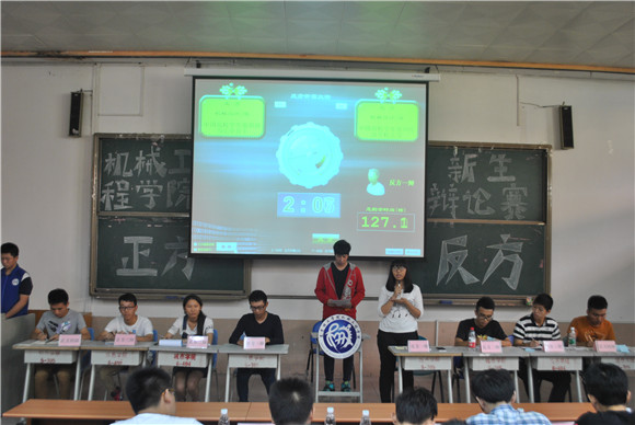 每场比赛的开始都由主持人先宣读规则,然后在依次进行比赛环节。其中最精彩的是第一场比赛,正方是来自机械设计2班的辩论队,他们的辩题是中国高校员工组织应当完全自主。反方是来自机械设计3班的辩论队,他们的辩题是中国高校员工组织应当由公司主导。在双方都进行自我介绍之后,进入本次比赛的第一个环节,正方开篇立论及反方的破题理论,时间各自3分钟。双方都以3个观点来分析,证明己方的辩题。然后正反双方进入一对一的攻辩环节,先由反方二辩对正方二辩或三辩进行提问。提问时间是10秒,回答时间是20秒,总时间1分30秒。然后交换提问方,规矩同上,直至正方二辩三辩,反方二辩三辩时间完毕。在正方三辩提问环节中,正方三辩以“公司”,“员工组织”,为切入点,抓住反方辩论的漏洞,打得反方措手不及。然而,正方却没有抓住从反方套出的“自主”来继续辩论,这是正方的不足之一。接着,进入攻辩小结阶段,由正反双方四辩进行攻辩小结,双方围绕一辩稿的观点进行分析,总结。终于,进入了本场比赛最激烈的环节——自由辩论。本环节双方各自有4分钟。正方提问反方回答,反方提问正方回答,以此进行开展。正方以“校园员工组织自主开展的活动”为例与对反方交战,最终以领先40秒的强大优势给反方一沉重的打击。最后进入总结陈词环节。反方阐述正方观点漏洞所在,并以3个观点强调反方的辩题观点。正方认为主体是员工,员工具有自主管理能力,所以员工组织具有个高素质水平,能够自主管理而来证明其辩题。比赛结束进入短暂的观众提问环节,虽然比赛已经结束,但是选手们还是认认真真地回答观众提出的问题。最后,在评委总结后由主席宣布,正方获胜。
