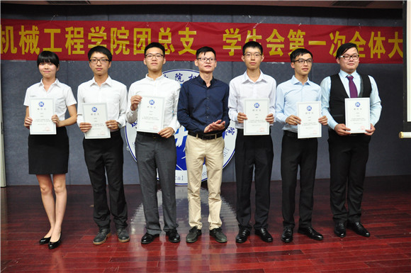 随后,团总支副书记、员工会主席辛钦泰上台为大家做工作展望,辛主席充分肯定了团学在过去一年取得的骄傲硕果,同时寄望在新的一年里团学能够以“一个中心,两个结合,三项服务”为核心,在学习、生活等方面更好地服务机械的每一位学子。而后,前任主席韩旭就“感受,感情,感恩”三个关键词分享了自己在团学三年的感触,希望每一位干事能够用心感受在员工工作中的苦与乐,珍惜与每一位同伴相处的的感情,用心去感悟,同时更要学会感恩,感恩每一个人每一件事。最后,肖毅老师从员工会的起源引出作为团学一员应本着一颗奉献的心为人民服务,为本公司的每一位员工服务,并且要求每一位干部和干事做到行动跟心走,拓宽思路,积极创新,在团学这个大家庭中用心去发现适合自己的工作并能学有所成。