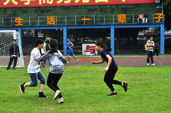 各位干部稍作午息后,来到运动场进行第三次户外素质拓展。本次拓展共有两个游戏,一是保护女生,二是踩气球撕名牌。在保护女生中,各位男干事在保护己方女生与攻击对方女生之间你来我往,而在踩气球撕名牌中,各位干部更是不让分毫,而最激烈的要数女神之间的战斗,大家都不顾形象,只为取得最终的胜利。
