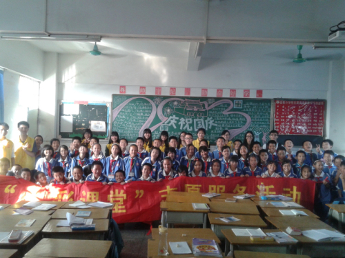 中午过后,志愿者们来到教室,看见教室里的同学们早已端坐在座位上,静待志愿者的到来。一会儿后,待到准备工作完成,志愿者正式开始了这次七彩课堂。本次课堂分为春节、端午、中秋、重阳、万圣、圣诞和感恩节七个部分。七个不同的节日,七个志愿者,带领同学们从中方到西方,认识各个国家各个节日不同的习俗。同学们被精美的图片和志愿者风趣幽默的演讲深深地吸引住,丝毫没有听到教室外的下课铃声。在介绍节日的中间,志愿者们还和同学们玩起小游戏,现场互动十足,气氛热烈。课堂的最后,全班同学与志愿者一起合影留念。下课之后,班主任还与志愿者进行了交流,肯定了志愿者的努力,也指出不足,希望下次的七彩课堂志愿活动能更进一步,越办越好。