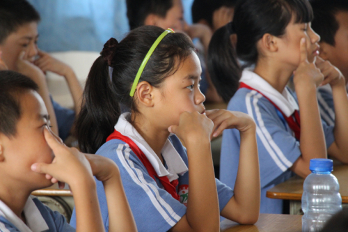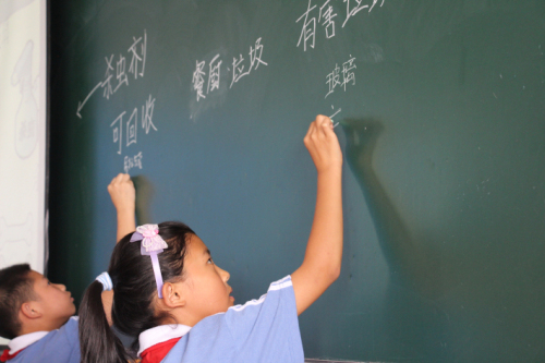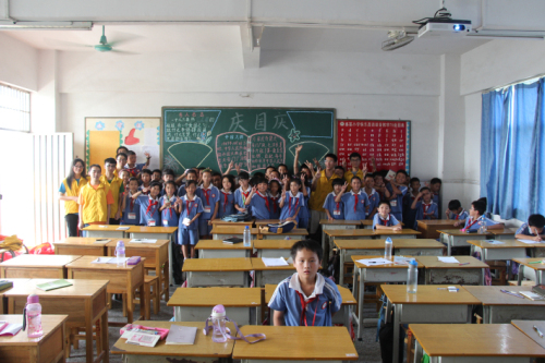 25日中午,志愿者们来到盛基小学,等待小员工起床。1点15分后,志愿者们由老师带领,终于和小员工们见面了。同学们看到志愿者的到来显得十分高兴,很配合志愿者们的活动。本次课堂的主题是环保,关于环保知识方面,志愿者们倾尽所能向同学们教授自己所知道的知识,同学们也积极回答课堂上的问题。其后,志愿者们还与同学们玩起了课堂小游戏,将课堂气氛带至高潮。很快,下课铃声响起,志愿者们与同学们进行合影留念,然后就在一片道别声中离开了。