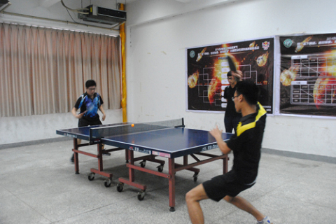 正当篮球赛如火如荼地进行时,体育馆乒乓球室里伟德国际1946bv官网与政法公司的乒乓球赛也毫不逊色,赛场的气氛也是十分紧张的。各路高手不断的涌现,每位选手的注意力高度集中,分析着对手的一举一动,直拍、横拍、扣球、旋转球、弧线球都展现着选手们的非凡实力。场外的观众也很激动,比赛中不时传出热烈的喝彩声,兴奋的“好球”声不断。