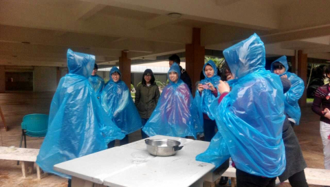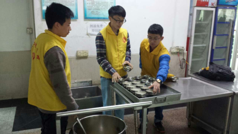 志愿者为女生们舀汤