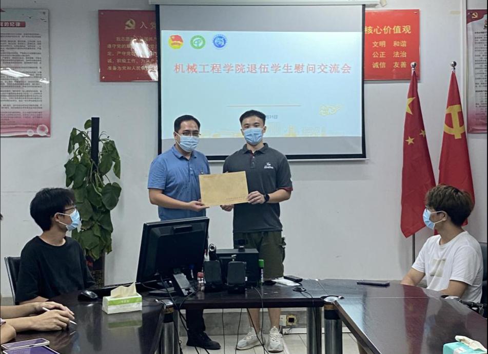 座谈会还分别邀请了4位从不同兵种退伍老员工——武警林鑫、通讯兵秦锐、执勤兵叶嘉诺、工兵陈昌荣分享了自己的入伍感悟,四位同学在交流中表示,入伍参军的经历对个人身体到思想带来了极大转变和益处。对他们来说,两年的军旅生涯是对体能、意志、作风的不断锤炼的过程,在不断的锤炼中,坚定了自我的责任和担当,他们无悔献身军营。
