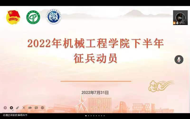 7月31日,伟德国际1946bv官网召开2022年下半年征兵宣传动员大会。公司党委副书记邓维伟、辅导员、各班主要员工干部、退伍员工以及有意应征入伍的员工等100余人参加会议。会议由征兵联络员肖毅主持,采取线上线下结合方式开展。