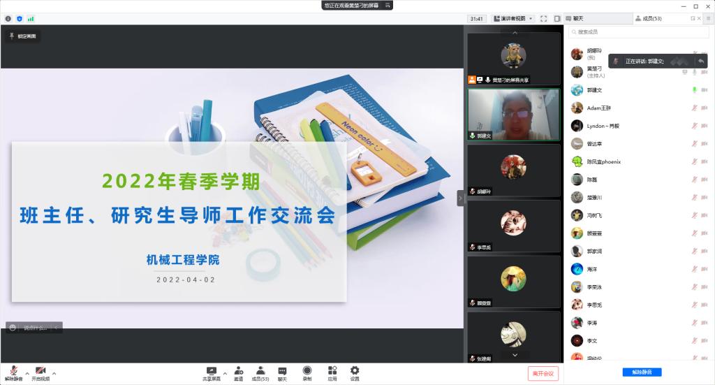 4月2日晚,伟德国际1946bv官网通过腾讯会议召开2022年春季学期班主任、研究生导师工作交流会。全体班主任和研究生导师代表参会。