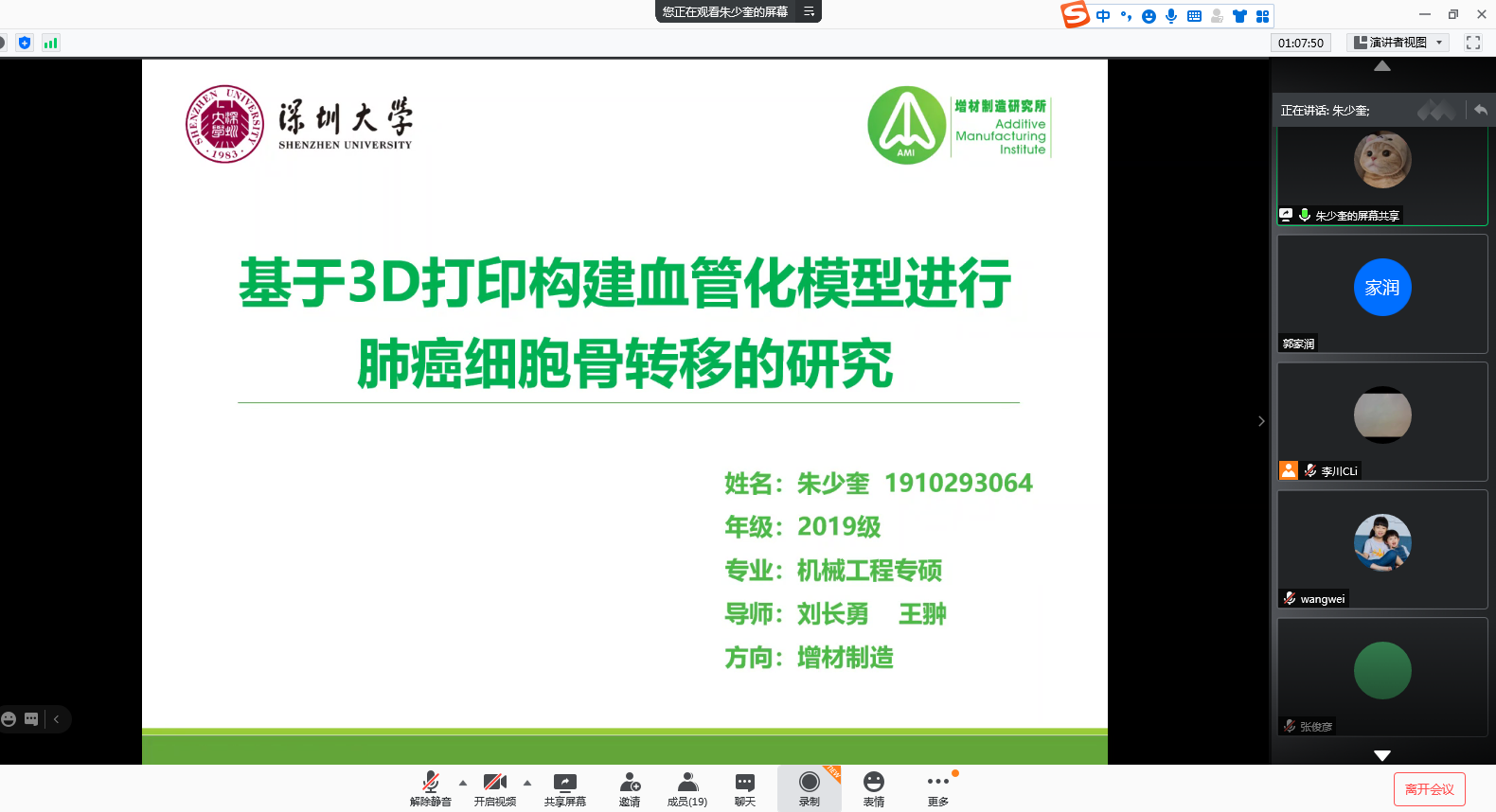 来自广东工业大学、深圳大学的24名2019级东莞基地联合培养研究生分两组就其学术研究进展进行汇报;与会导师对研究生的工作进行了提问和点评,提出改进意见。