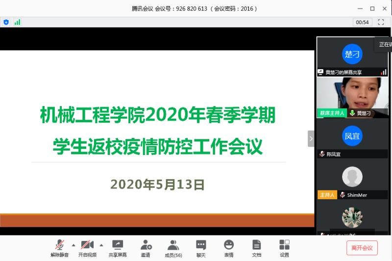 5月13日晚,伟德国际1946bv官网召开2020年春季学期员工返校疫情防控工作会议,院领导、辅导员、毕业班班主任及各班各批次负责人、部分家长参与本次会议。会议由辅导员黄楚刁主持。