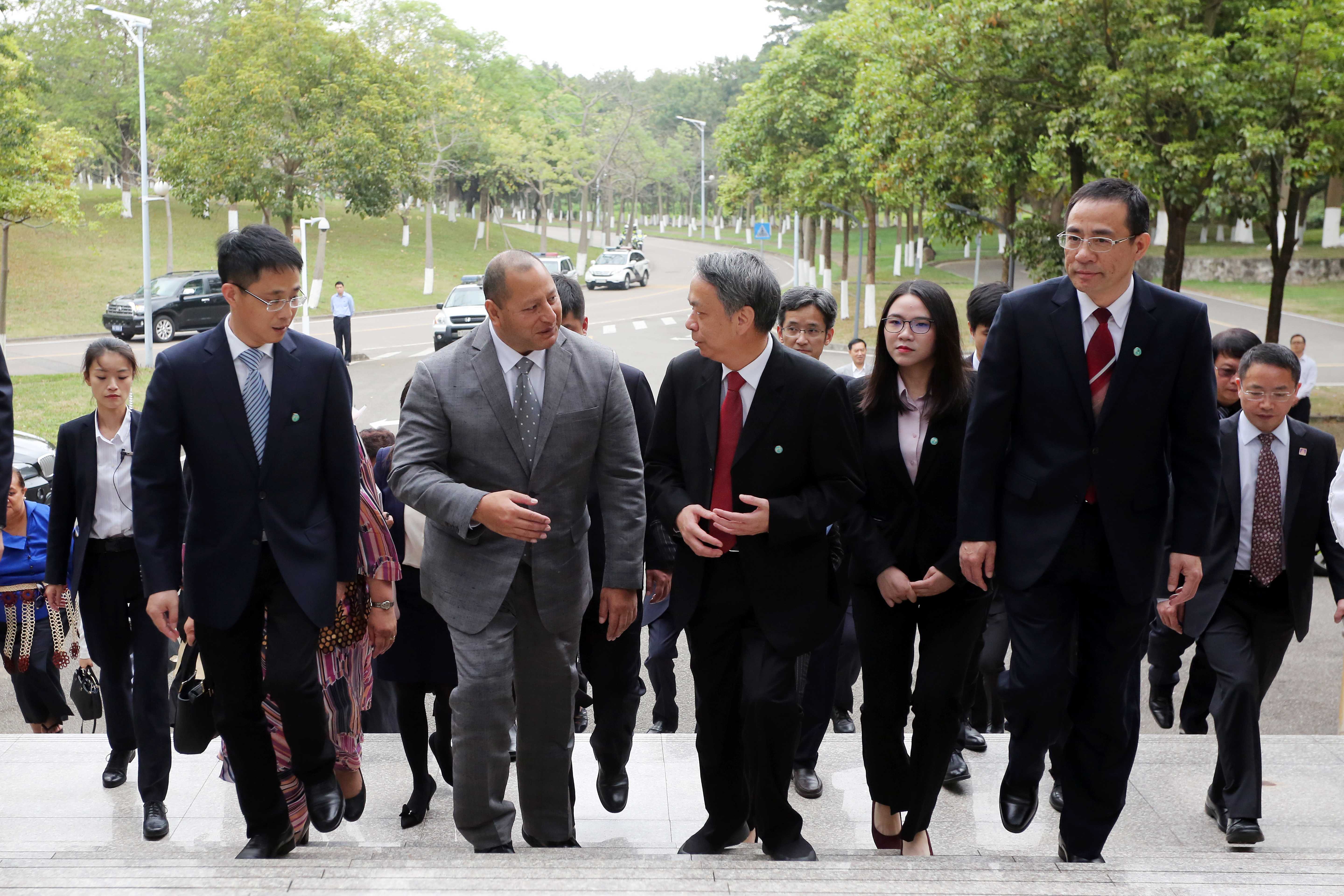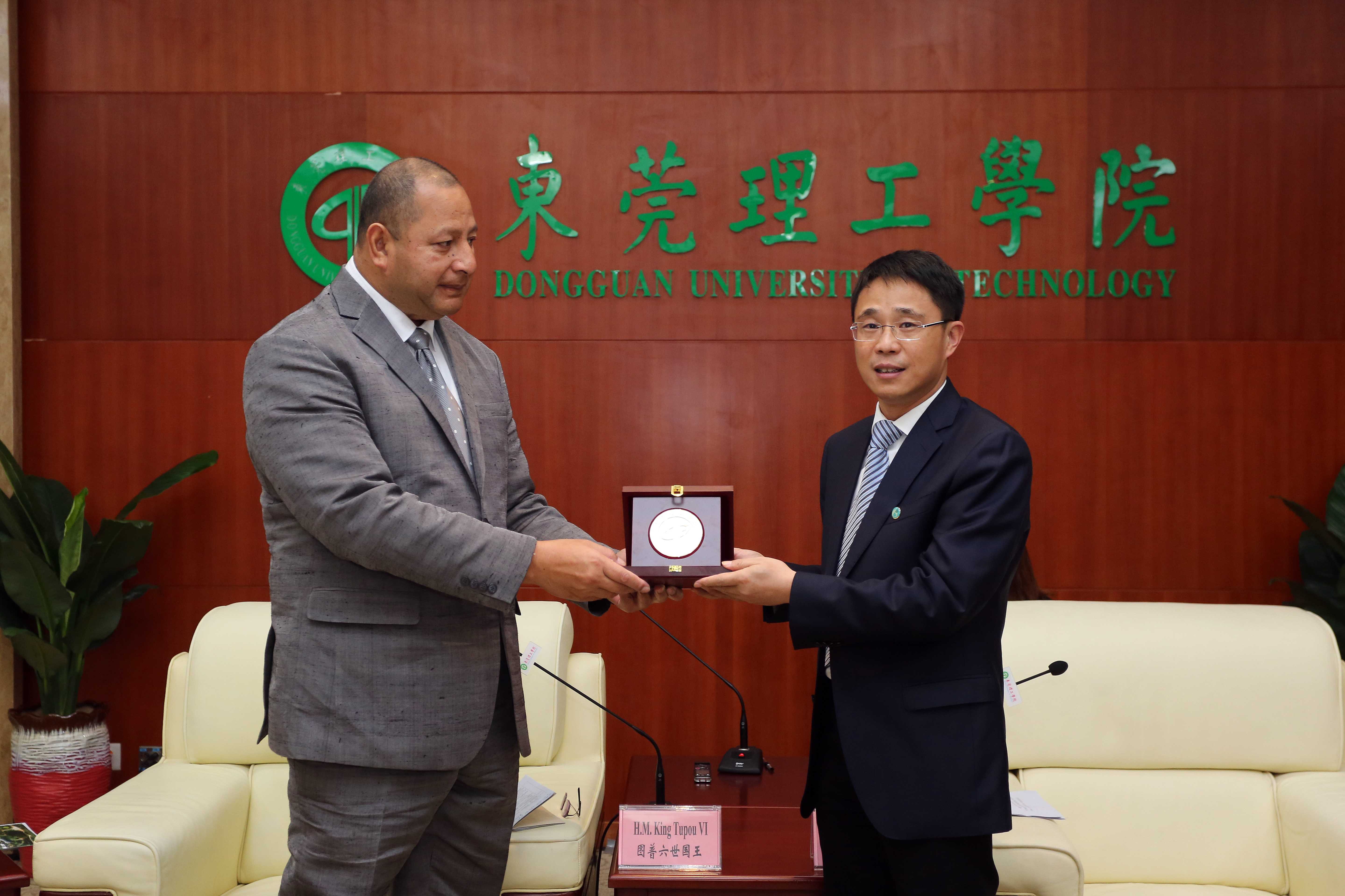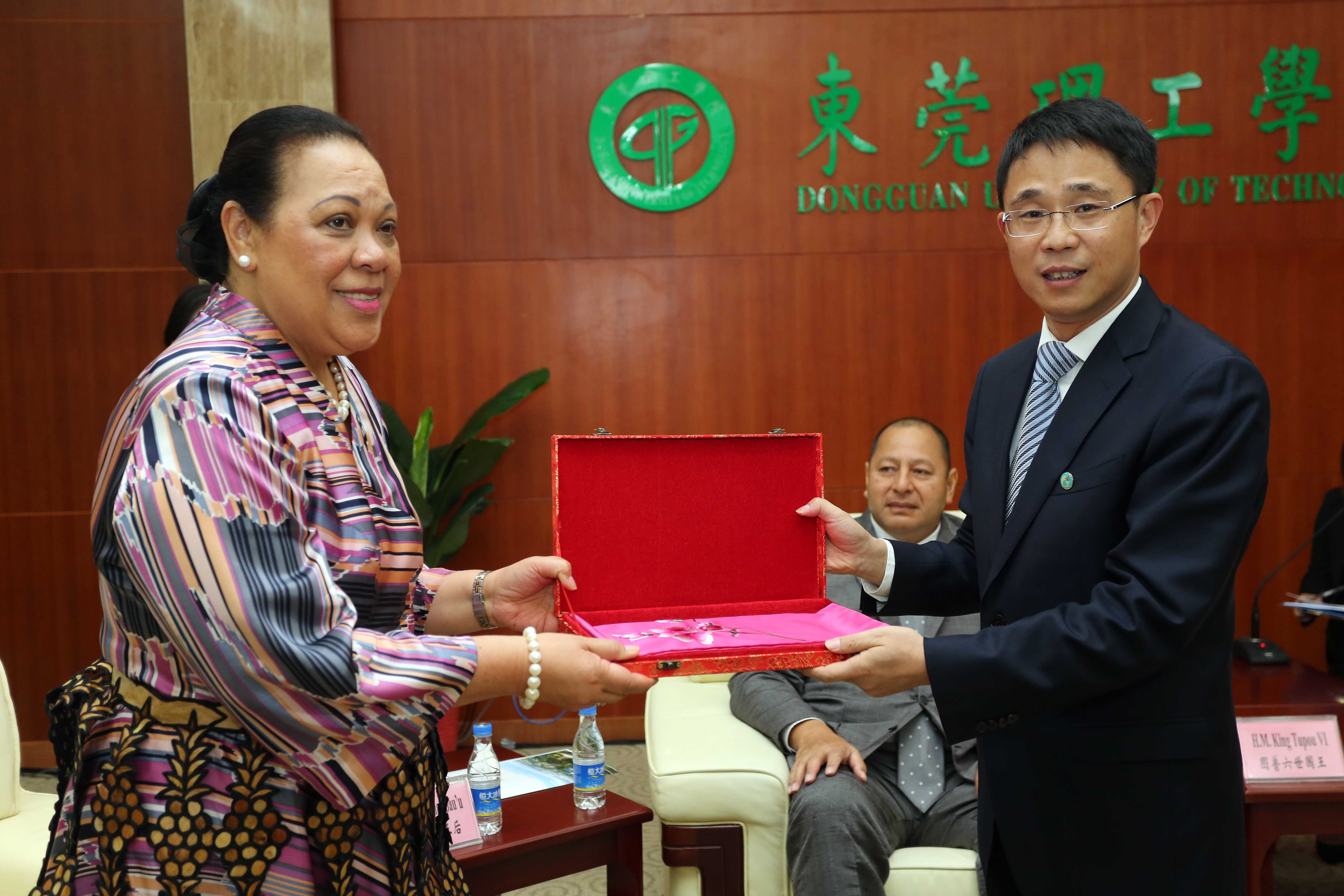 公司党委书记成洪波代表公司师生,对图普六世国王及王后的到访致以热烈的欢迎和衷心的感谢,并向图普六世赠送bevictor1946韦德官网校徽、向王后赠送粤绣丝巾作为纪念品。