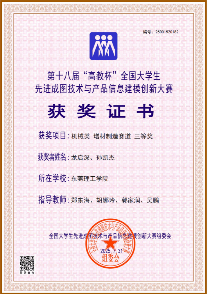 增材制造赛道三等奖:龙启深、孙凯杰。