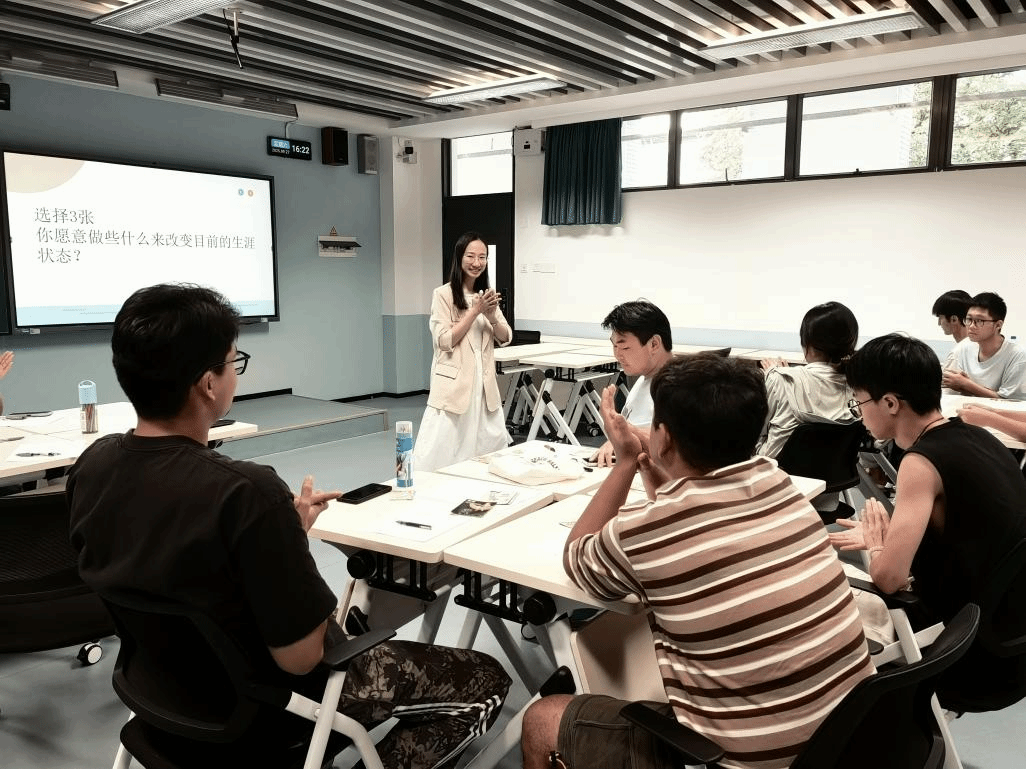 本次团辅的一大亮点是借助OH卡(潜意识图像卡)这一心理学工具,搭建“自我对话”的独特通道。吴老师引导员工通过抽取卡牌、联想分享、小组交流,绕过理性思维定式,从卡牌图像中投射出对生涯困境的困惑、对潜在资源的察觉,以及对内心真实需求的挖掘——有员工从卡牌中看到“大学方向的迷茫”,也有员工从中发现“主动请教师长、参与实践的突破路径”。现场氛围热烈,员工们在轻松的互动中打破认知局限,完成对自我兴趣、价值观与潜能的再发现,实现深度自我唤醒。