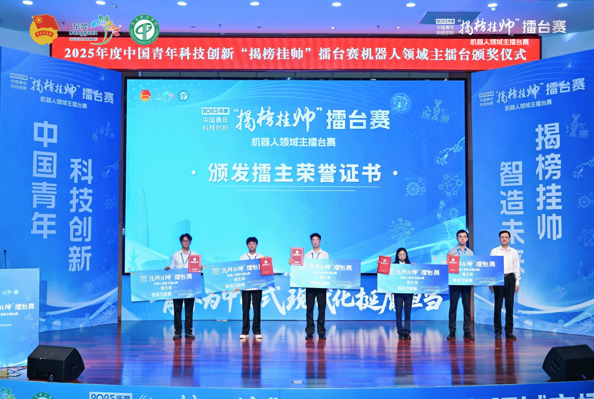 2025年10月10日-12日,2025年度中国青年科技创新“揭榜挂帅”擂台赛“机器人领域”终审擂台赛在广东省东莞市成功举办。伟德国际1946bv官网参赛项目《双动平台混联踝关节康复机器人》成功入围终审擂台赛,并最终夺得擂主!