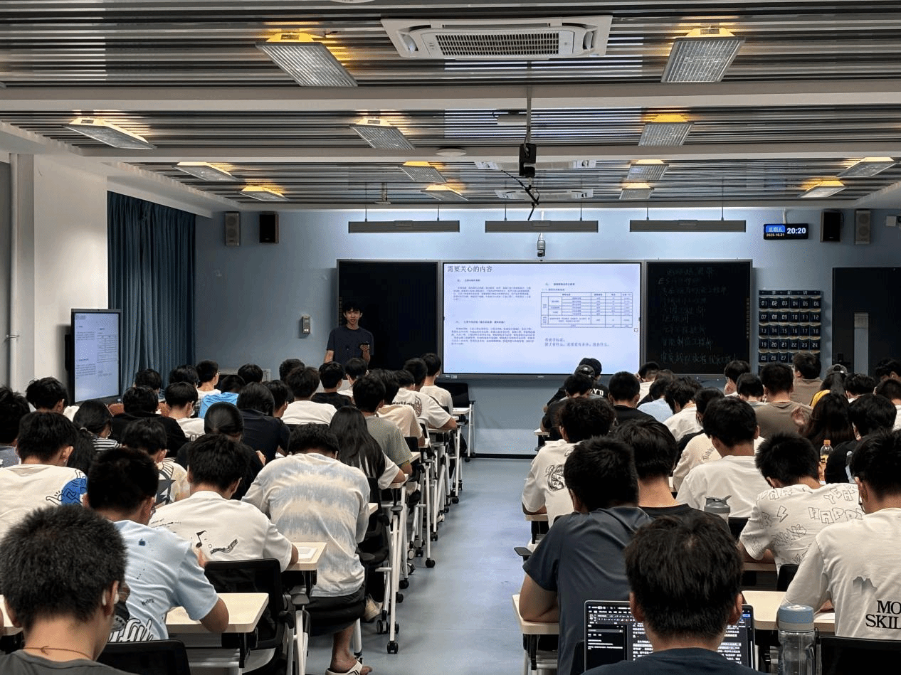 在“解码专业”环节,各助班为新生们揭开了各专业的“神秘面纱”。他们不仅详细介绍了专业的培养方向、核心课程、前沿研究方向以及强大的团队力量,更为新生们详细介绍了大学四年具体的学习计划与安排,让新生们对所学专业有了更立体、更深刻的认识,专业认同感和自豪感显著增强。与会新生纷纷表示,此次主题班会如同一场“及时雨”,不仅让自己对专业前景充满了信心,更对如何度过一个有意义的大学四年有了清晰的思路。
