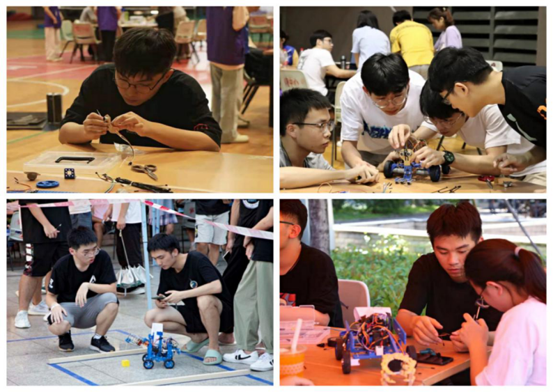 本次机器人竞赛、初赛、复赛均以拼装竞速为比赛项目。在首两轮的赛场上,各参赛选手斗志昂扬却不失严谨,比赛现场群情激奋。各院精英,汇聚于此,切磋交流,较量高下。他们一丝不苟,是速度与才能的较量,初赛、复赛激烈的角逐,最终诞生了12支决赛队伍。