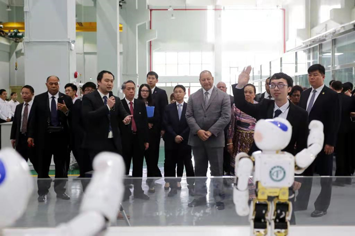 (汤加王国国王参观伟德国际1946bv官网并观看员工操作机器人表演)