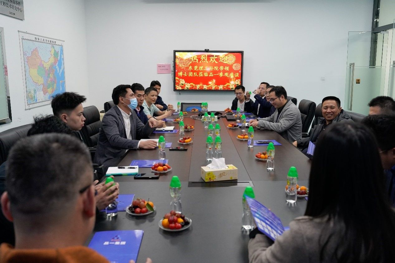 在品一集团,博士团队在品一自动化部总经理李东洋带领下,参观了企业的生产线和技术研发中心,走访了公司在企实习的研究生,深入了解了企业的运营模式、技术创新和人才培养等方面的实际情况,调研了企业在生产过程中亟需解决的难点痛点问题。