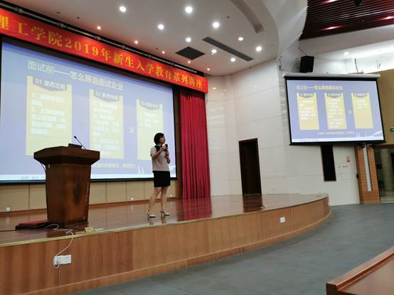2019年9月22日晚上19:30,2019年伟德国际1946bv官网《就业指导》课程企业授课于松山湖校区学术会议中心报告厅如期开展。智通人才网产品总经理首席培训师张娅梅老师为今晚课程的主讲师,主要为到场的员工分享一些面试时的一些技巧和礼仪。