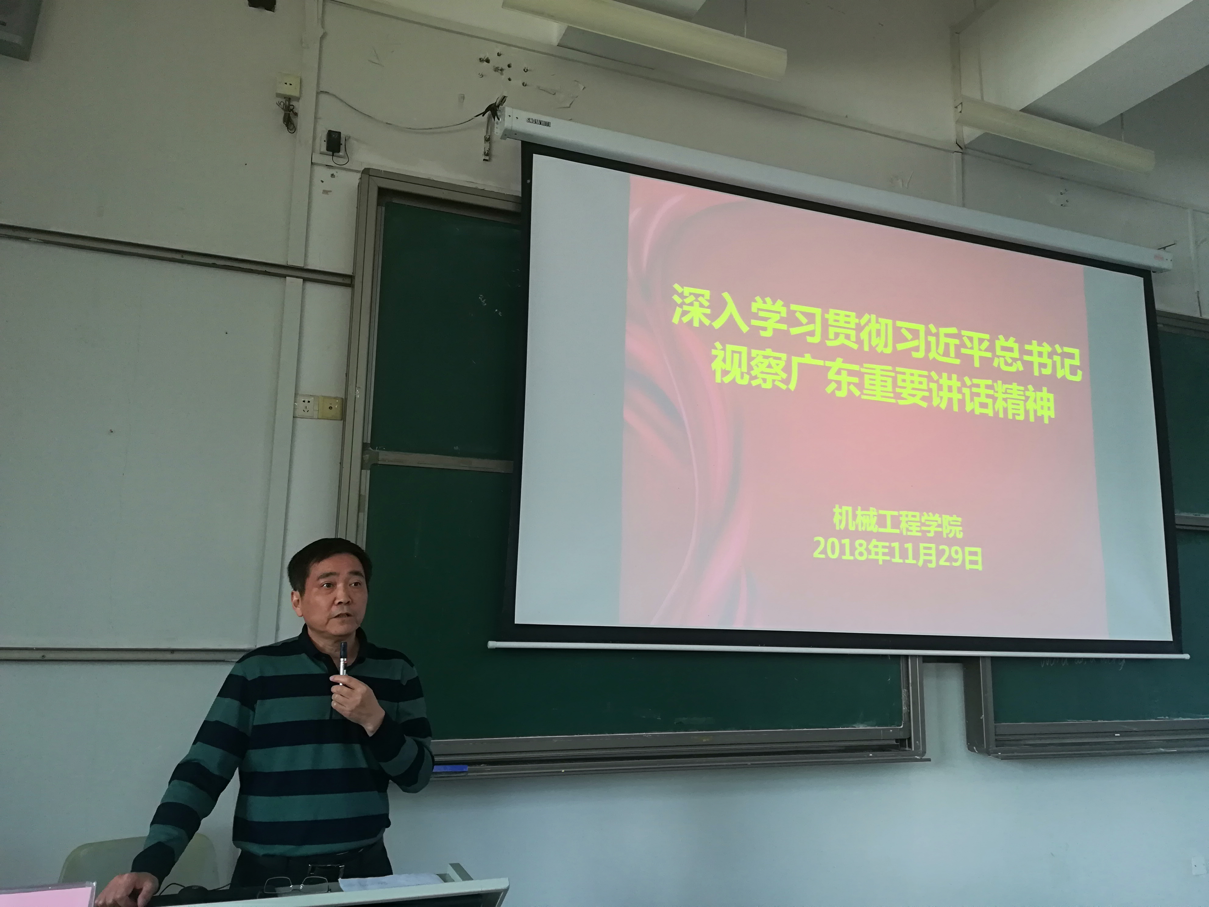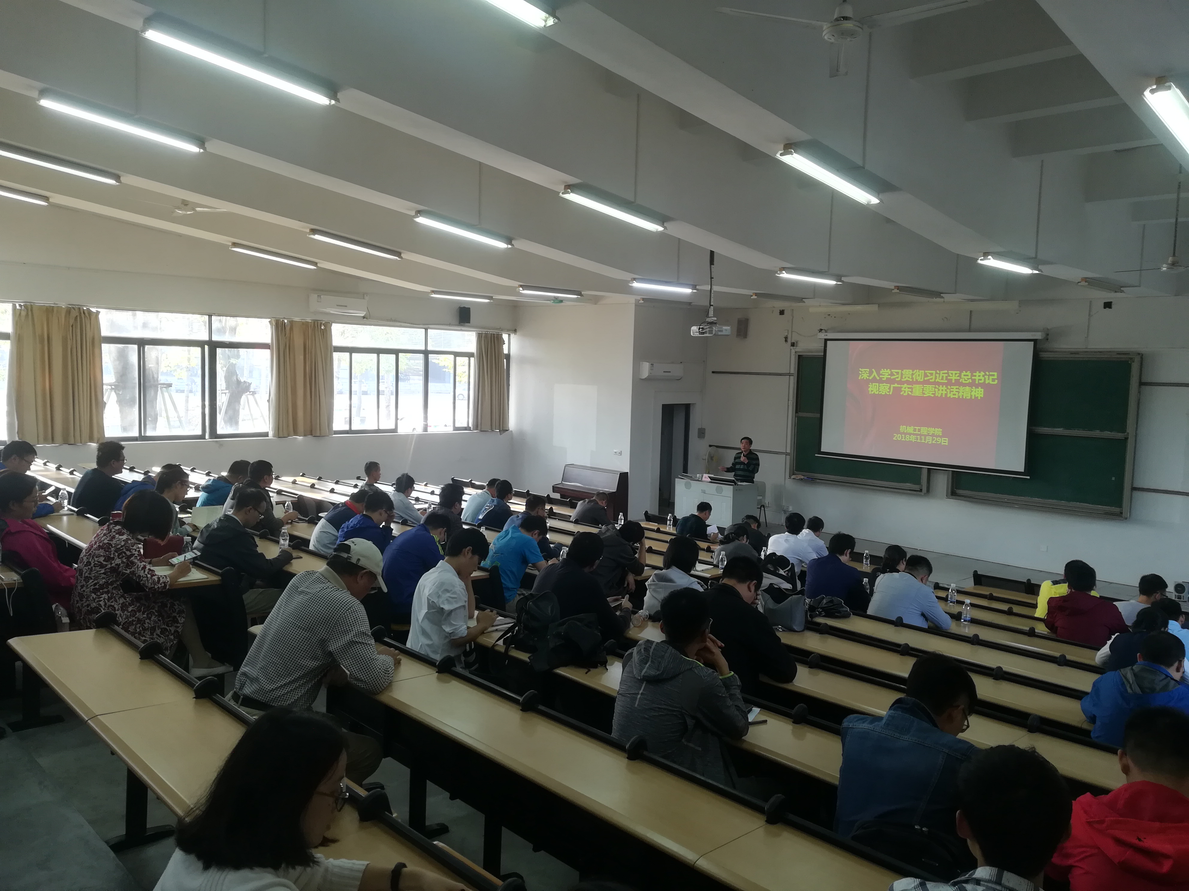 2018年11月29日下午,伟德国际1946bv官网在教学楼6E206组织召开习近平总书记视察广东重要讲话精神专题学习会,参与人员包括全院教职工和员工党员。会议由党总支书记钟守炎主持。
