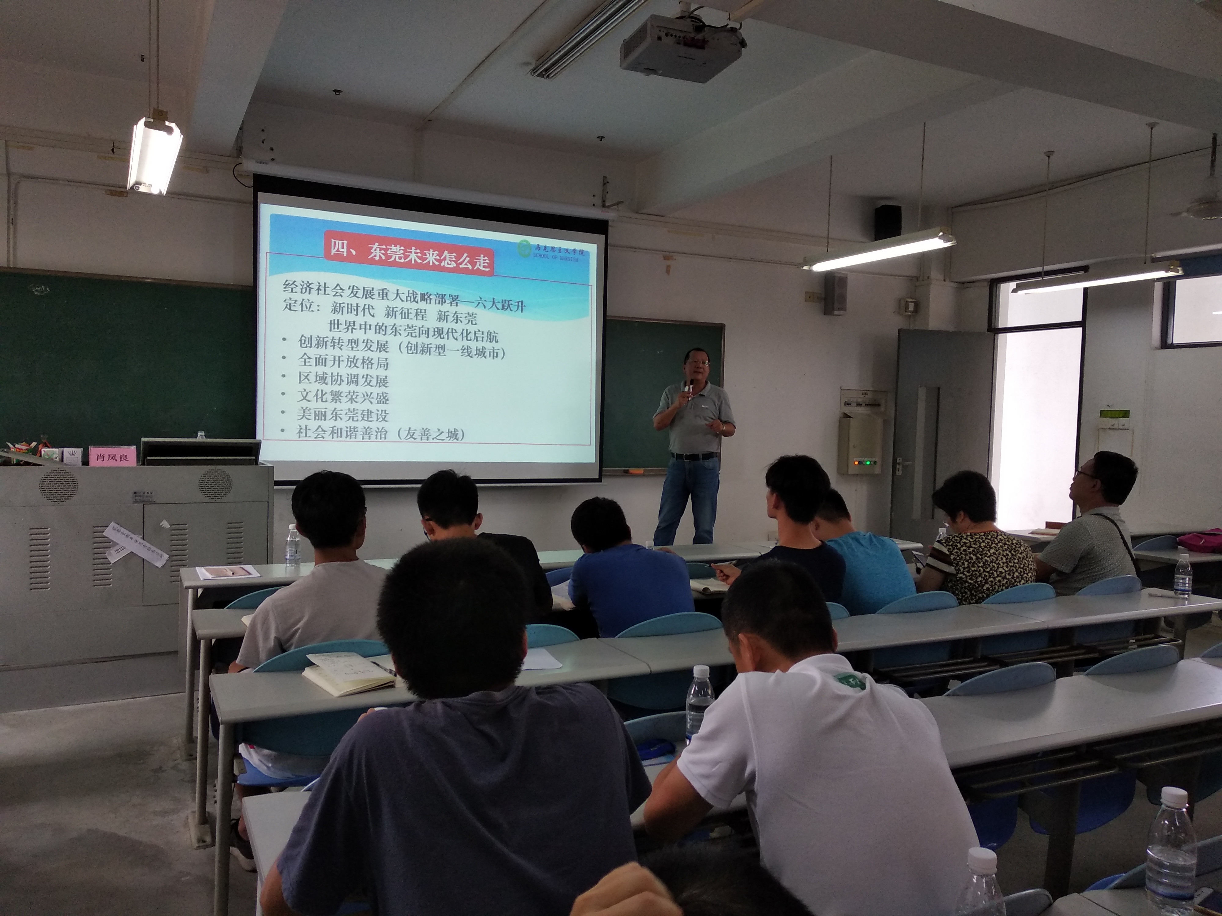 肖凤良老师以“紧扣三十讲,漫谈四十年”为主题,结合东莞故事,将三十讲的内容通过精彩生动的语言讲述了中国特色社会主义在南粤大地的生动诠释,让政治理论学习穿插在这些活生生的事例当中,使师生更容易学习政治理论是如何作用于我们日常生活中的。肖老师对《三十讲》概要、主题内容进行了梳理,结合东莞四十年改革开放讲解了三十讲的重要内容。其中肖老师的讲话内容主要围绕着“东莞发展成就”、“东莞的过去”、“东莞所走过的路”、“东莞未来怎么走”、“东莞新机遇——拥抱大湾区”来展开,透露出我们东莞的发展目前处于天时地利人和阶段,重新定位了“新时代,新征程,新东莞”,以创新为引领使东莞向世界启航。