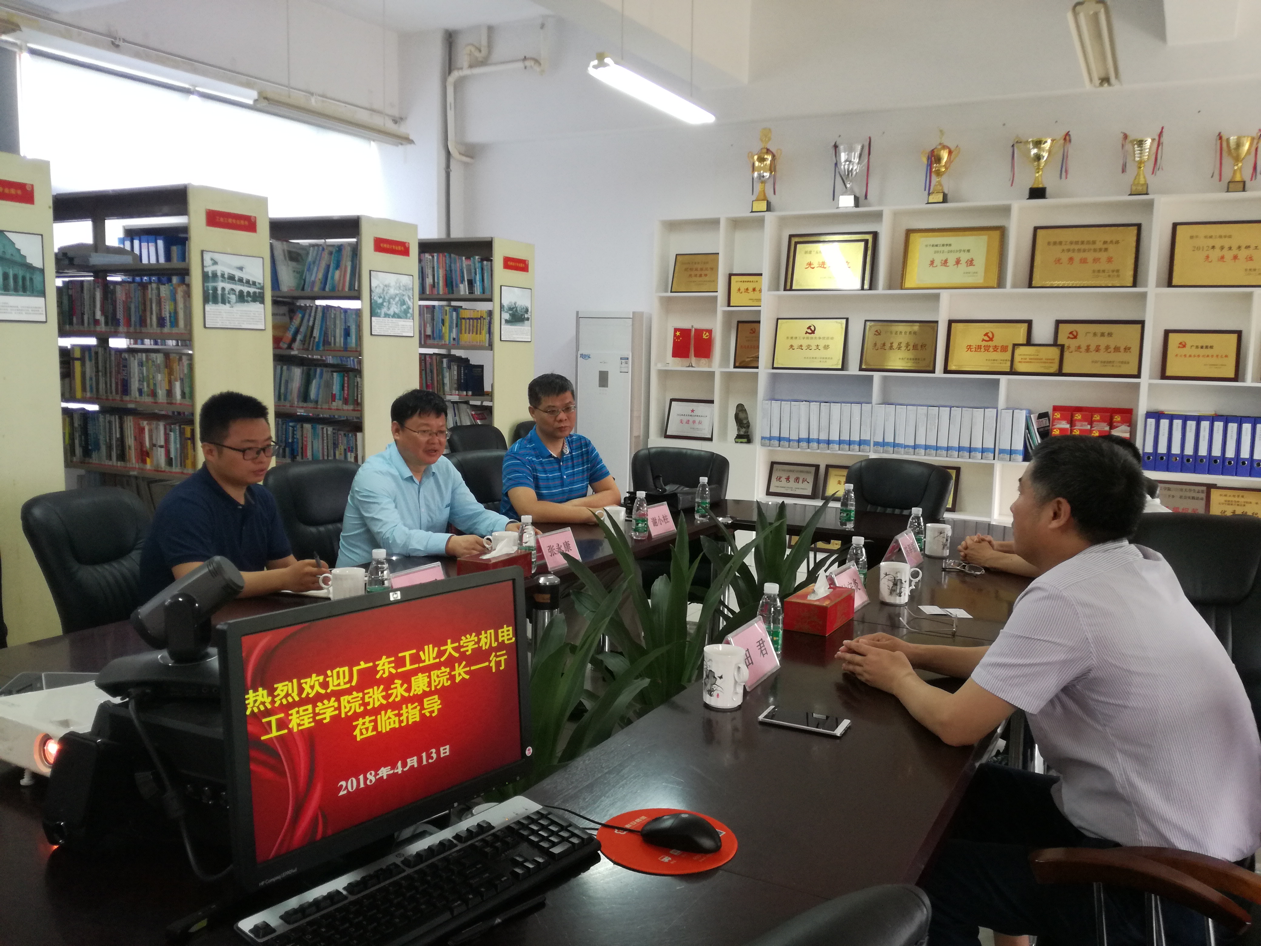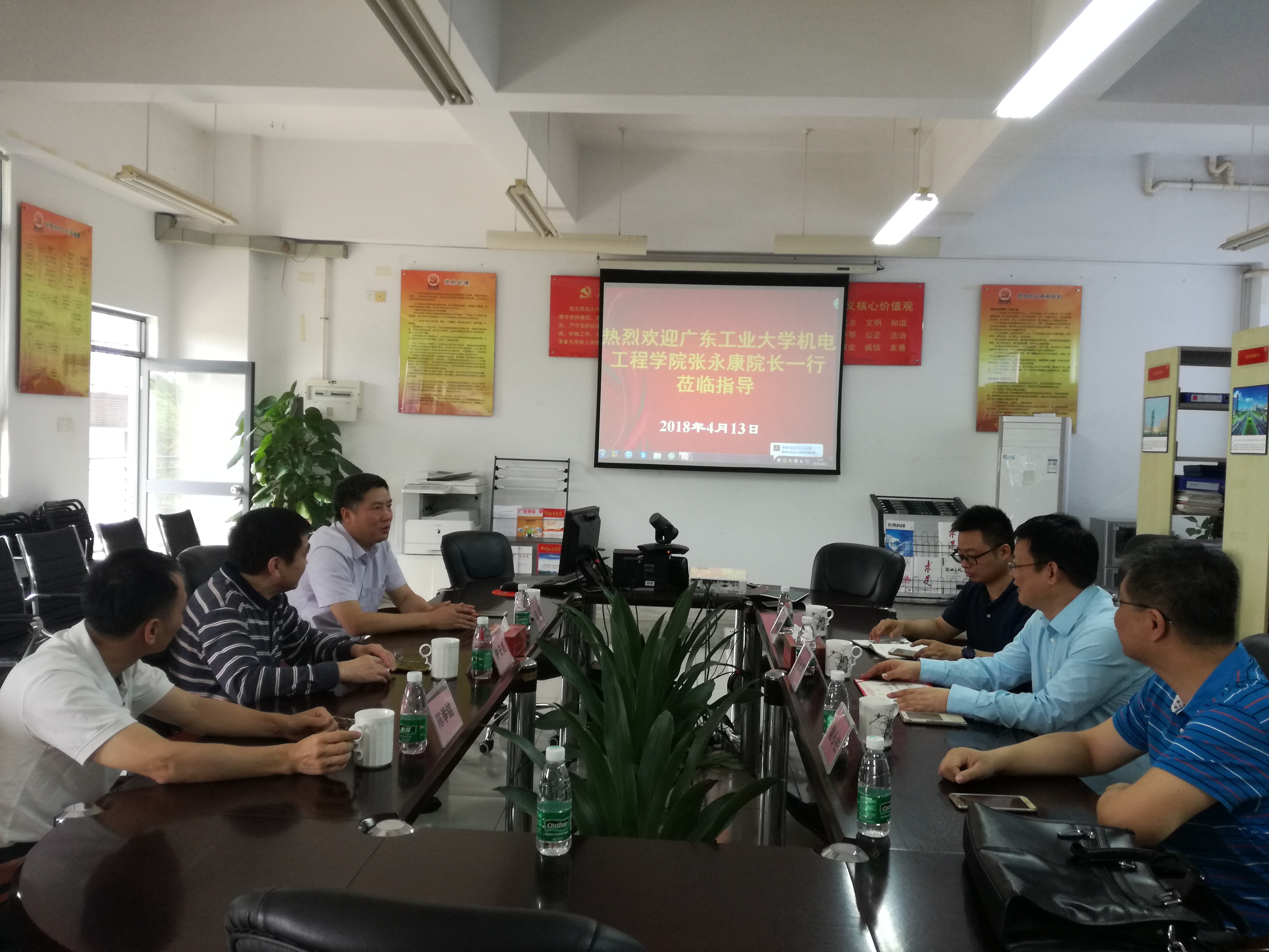 2018年4月13号上午,广东工业大学机电工程公司经理张永康一行到访伟德国际1946bv官网学习交流,公司党总支书记钟守炎、副经理田君、副书记陈举铭出席此次接待活动。