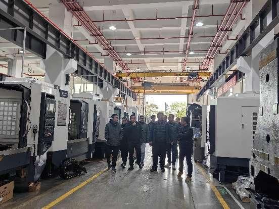 在创世纪集团,孙振忠一行参观了企业车床生产线,与集团人力行政总经理张伟、创世纪商公司副经理刘国芳等进行座谈,就人才培养、产教融合、就业拓岗等内容进行了深入交流,并就奋楫班开设、研究生实习基地建设等具体工作达成初步合作意向。