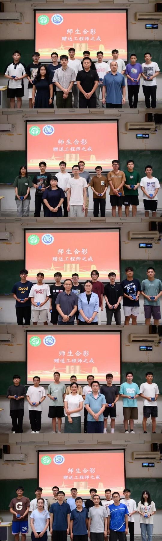 随后,导师们为每位新生颁发了象征荣誉和责任的“工程师之戒”。这一环节象征着新生们正式迈入了机械的学术殿堂,承担起未来科研学术的使命和责任。