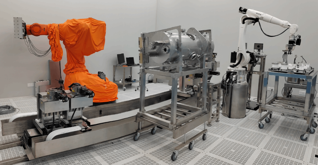 4.构建AGV-库卡机器人协同作业平台,采用激光SLAM导航与柔性力控技术,实现百千克级超导腔的毫米级对接装配。