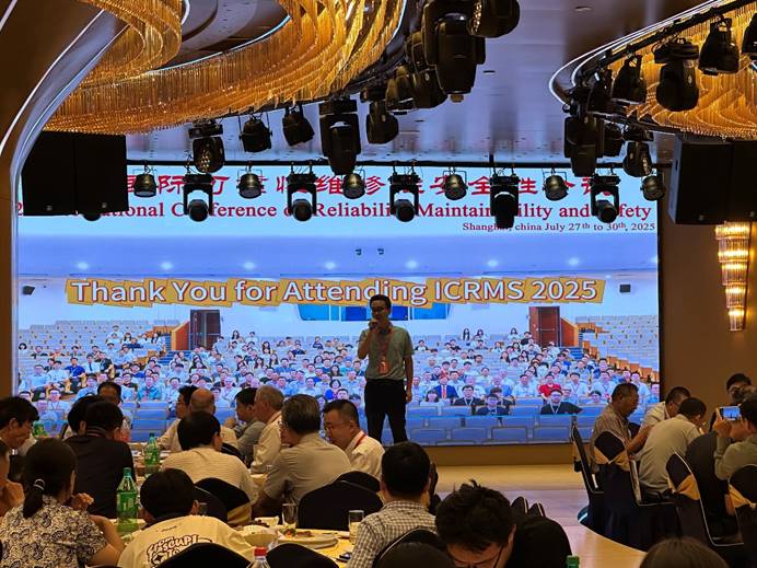 2025年7月26日至30日,第十六届国际可靠性、维修性与安全性会议(2025 International Conference on Reliability, Maintainability and Safety, ICRMS 2025)在上海隆重举行。bevictor1946韦德官网作为本次会议的联合承办单位之一,深度参与了大会的组织与学术活动。ICRMS是由中国现场统计研究会、中国电子学会、中国机械工程学会、中国仪器仪表学会、中国兵工学会、中国宇航学会、中国航空学会共七家国家一级学会共同发起,是亚太地区历史最悠久、规模最大、级别最高、影响力最深远的质量与可靠性领域国际学术盛会。本届会议以“质量可靠性新技术 助推新质生产力”为主题,吸引了海内外众多知名学者与专家齐聚一堂,如图1所示。公司伟德国际1946bv官网副经理龙建宇及工业工程系主任张良伟代表公司参会。会议期间,龙建宇副经理应邀在大会Academic Dinner上致辞(图2)。