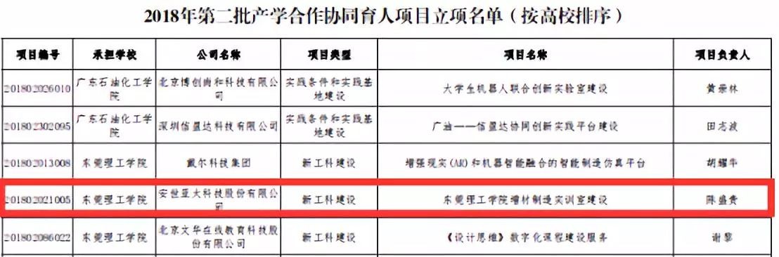类型一 近日,教育部发布《教育部高等教育司关于公布有关企业支持的2018年第二批产学合作协同育人项目立项名单的函》(教高司函〔2019〕12号)文件,公司伟德国际1946bv官网工程实践教育中心陈盛贵老师获批2018年度第二批产学合作协同育人新工科建设项目《bevictor1946韦德官网增材制造实训室建设》。