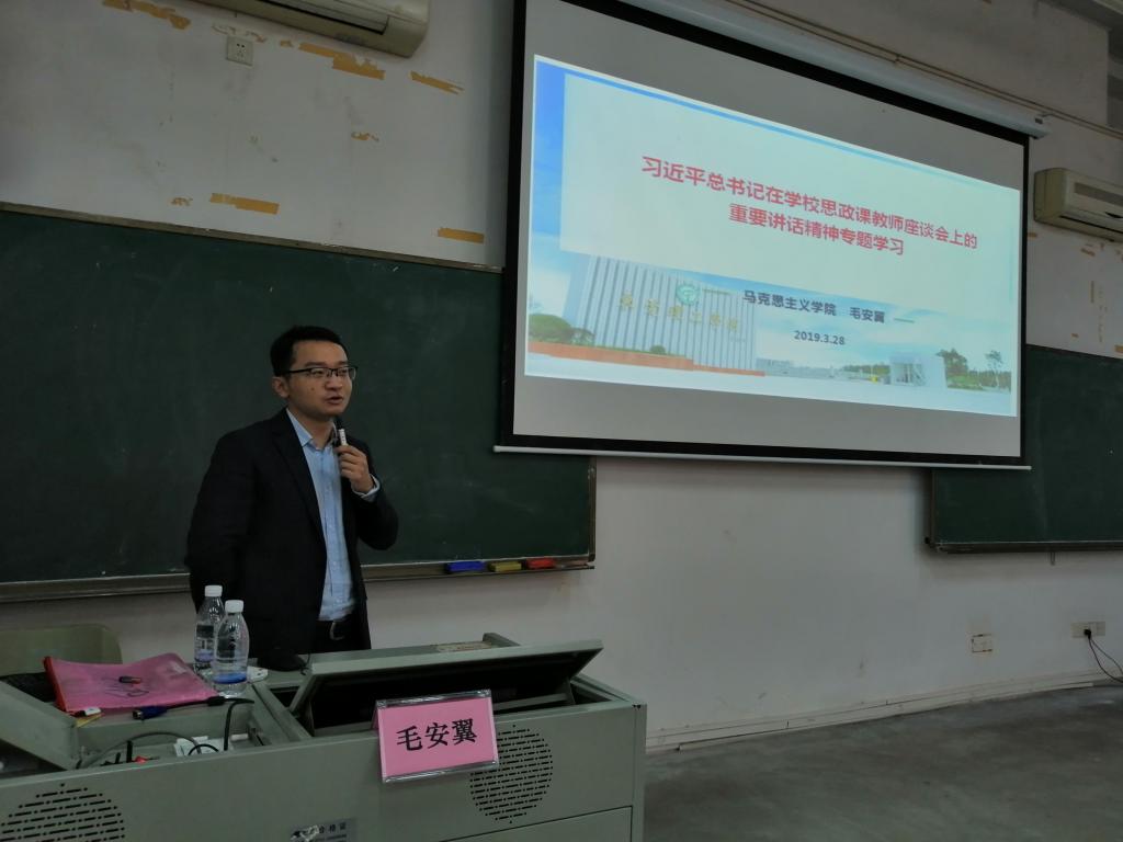在谈到如何落实座谈会精神时,毛老师指出课程思政是落实会议精神和习近平总书记重要讲话精神的重要路径,课程思政建设的根本问题在于培养什么人、怎样培养人和为谁培养人。思政课教师要立足学科优势,将思政课程与课程思政相结合,扬长避短,优势互补,只有这样才能真正做到知行合一,立德树人。