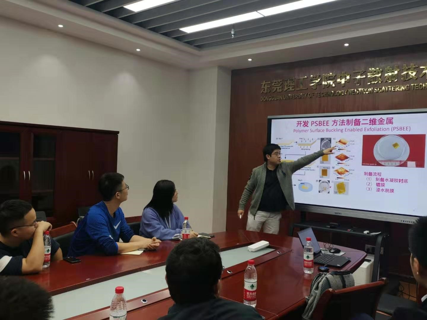 杨教授在报告中详细介绍了课题组最近开创的在聚合物表面制备大面积二维金属的方法(PSBEE)。该方法主要包括:制备水凝胶,磁控溅射镀膜和浸水脱膜三个步骤。通过这种新方法制备二维金属(10nm-50nm)的化学成分可以从简单金属到高熵合金,在结构上可以从晶态和非晶态,有较宽的调制范围。制备的二维金属表现出独特的光学性能和力学性能,在纳米催化材料,纳米传感器,柔性电子和纳米太阳能电池等领域有广泛的应用前景。此外,杨教授还在晶格结构为面心立方的五元高熵合金中发现了Elinvar效应,并从机理上给出了不同于传统Elinvar效应机制的解释。提问环节,参会人员和杨教授进行了热烈地讨论和深入交流,参会人员表示收获满满,意犹未尽。