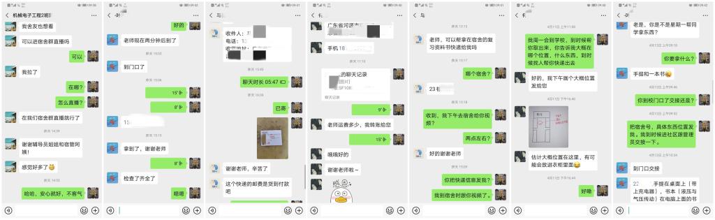 与此同时,辅导员黄楚刁走访部分公司留校同学,关心同学们在校生活和作息情况,了解员工近期动态。还帮助部分同学从社区取出学习所需电脑、考研复习资料、毕设所需书籍、就业所需证书等。有的选择在校门口交接,有的请求老师帮忙邮寄。确保使不方便返校的同学能拿到学业所需的材料,保障员工顺利完成学业。