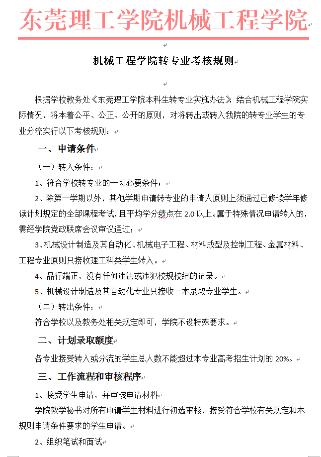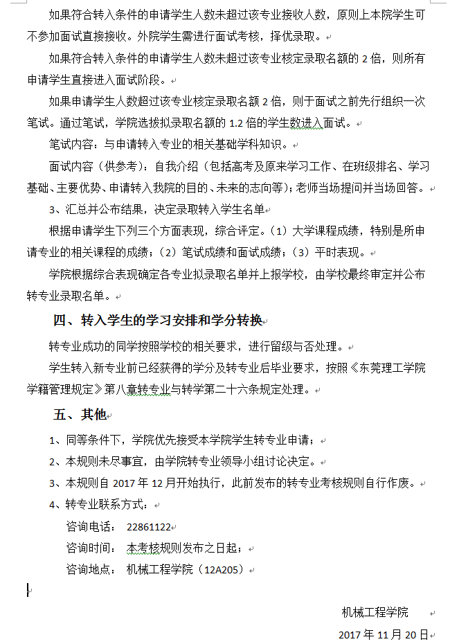 2017-2018第一学期 伟德国际1946bv官网转专业考核及审核标准