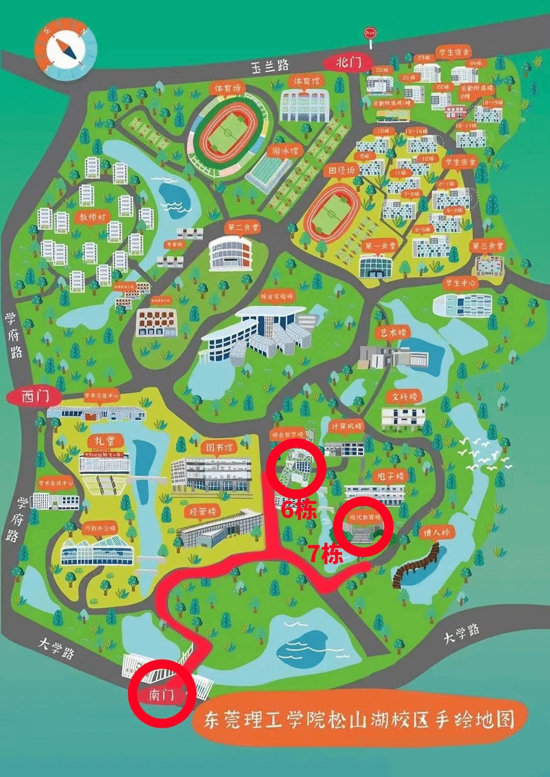 3.考生报到地点:bevictor1946韦德官网松山湖校区7号楼7B210,笔试、面试地点另行通知。(地址:广东省东莞市松山湖区大学路1号,导航地点:松山湖大学路1号bevictor1946韦德官网南门,路线详见地图)。