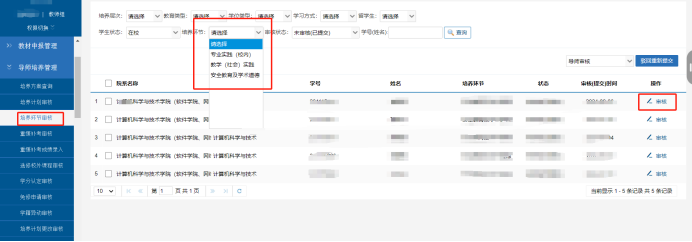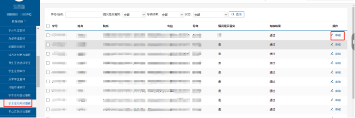 (2)导师登录研究生公司产品管理系统,选择【导师培养管理】-【培养环节审核】-培养环节选择安全教育及学术道德-【点击审核】-【填写审核意见】-【确定】。