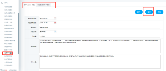 (1)研究生登录研究生公司产品管理系统。日常学术活动登记选择【培养管理】-【学术活动登记】-学术活动考核选择选择【培养管理】-【学术活动考核】-【提交考核申请】。
