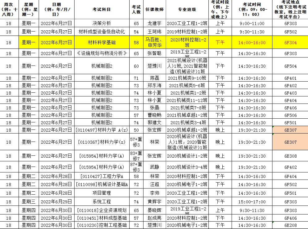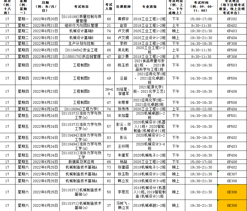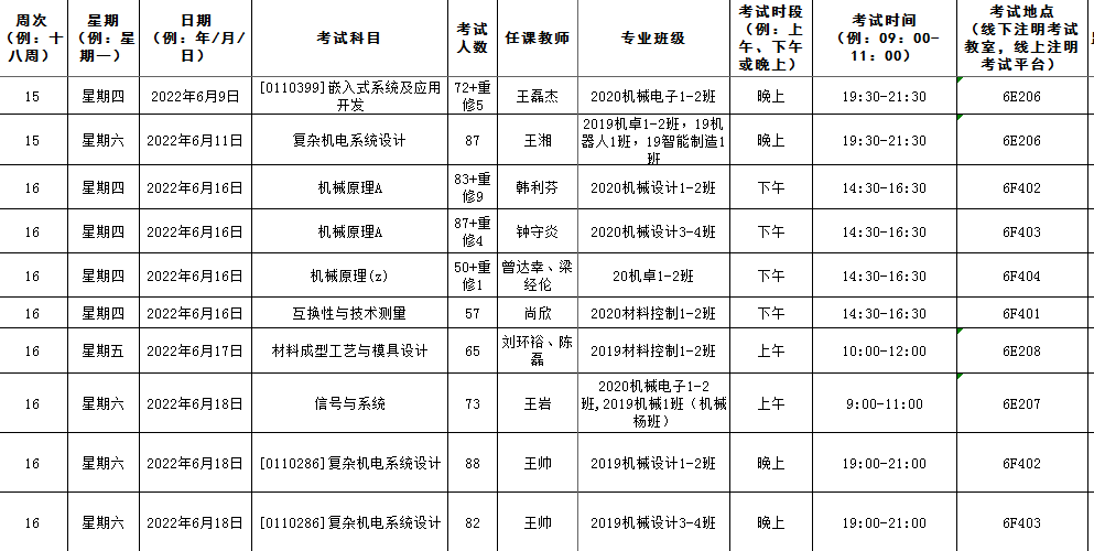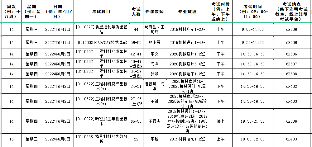 机械工程院安排的考试如无特别说明,补修、跟班重修的员工按跟班班级就坐考试